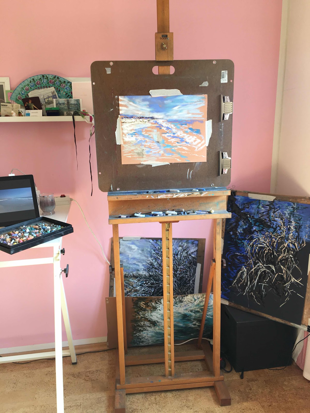 Having had the holiday, done the beach sketch it's time to take things one step beyond the pages of my sketchbook. Starting a wee seascape about 30cm x 40cm just to edge myself back into my pastels.