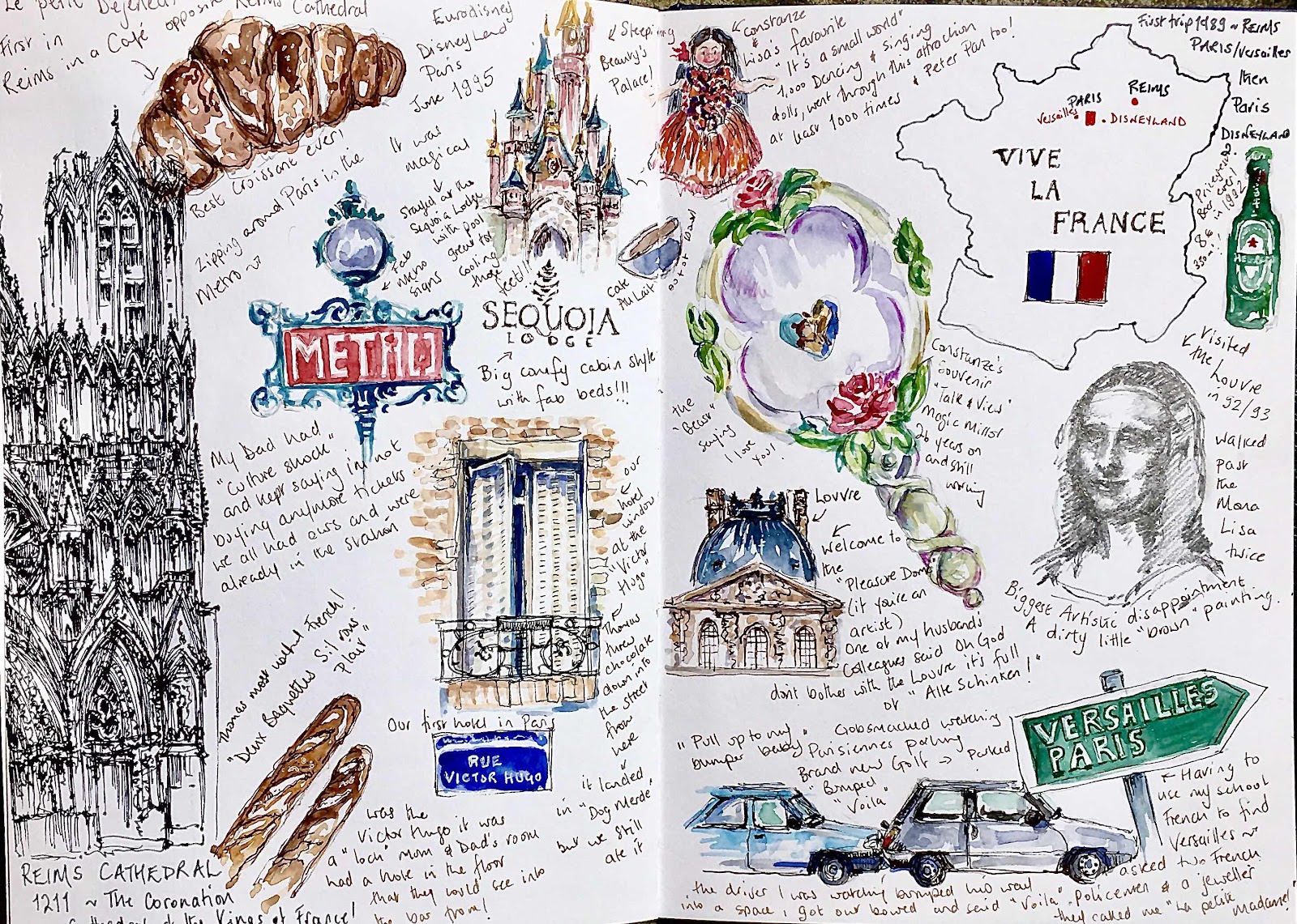 Yes, I know there’s a lot of sketching going on at the moment, life has popped in to stop me getting to my easel! This is my final France page, lets take a peek!