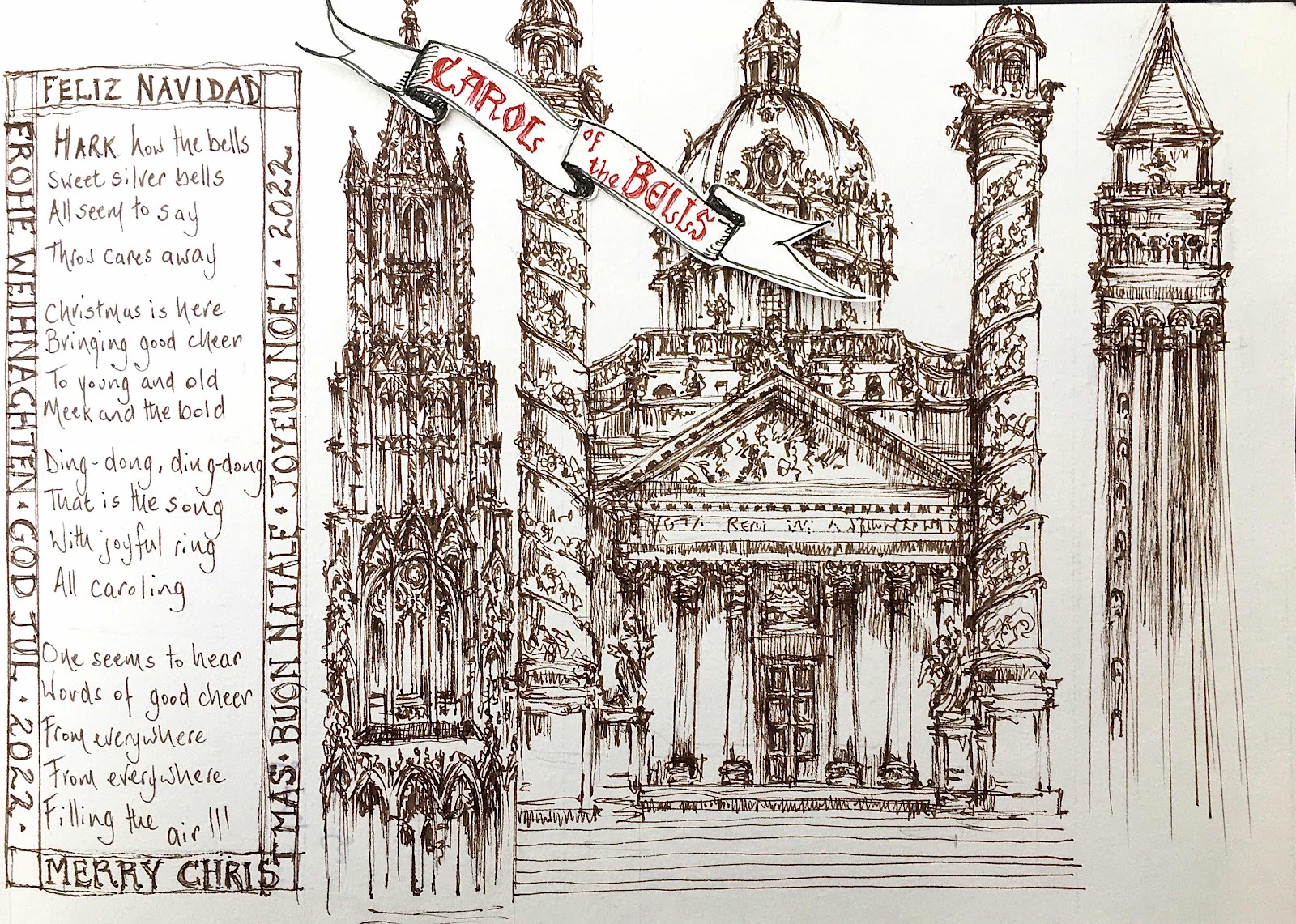 Taaaadaaaa, my Carol of the Bells inspired sketchbook page is finished ……!